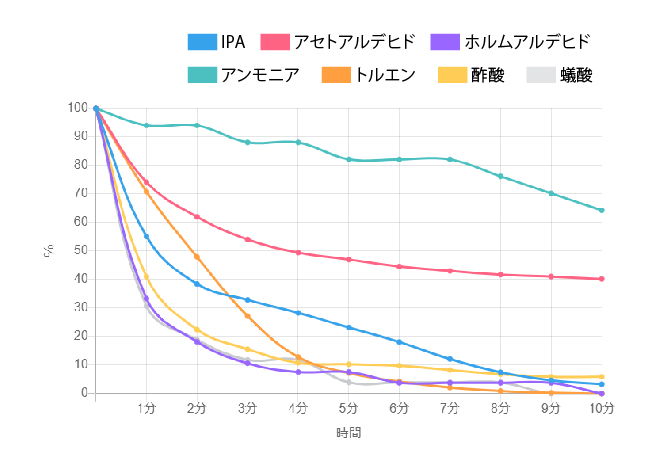 センサーは検知できる種類・濃度に限りがありますが、分解、除去は別の仕組みで行われています。